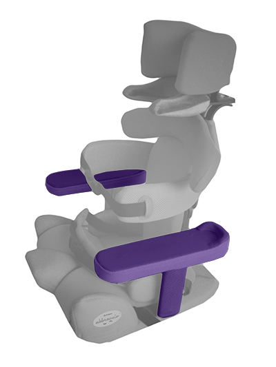 The armrests are modelled for containing the forearm, with pre-set modular elements that allow height, width, inclination and antero-posterior direction adjustments. The upper part of the armrest is covered with a washable material which allows care givers to keep the support clean with a simple wipe with a clean sponge, while the rod coating is removable and washable.