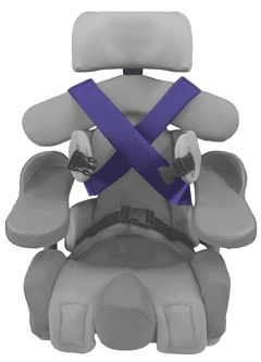 The chest strap placed between the two side supports, offers a further restraint on the chest which with the side supports helps in giving an important proprioceptive input.